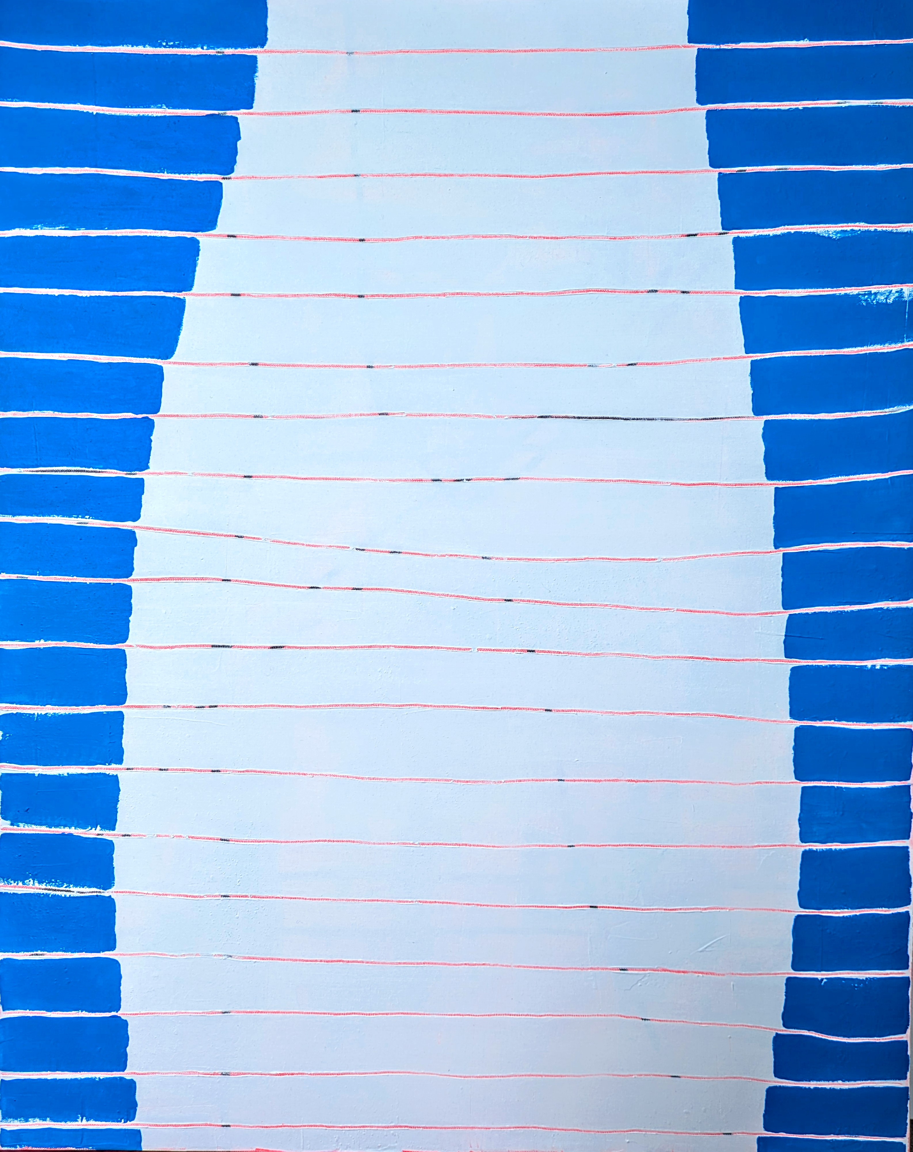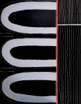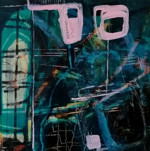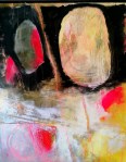 The use of lines, layering, scratching into and removal of paint create a sense of disturbance; symbolic of the internal and external struggles and pressures that were on me. And amongst the disturbance there are also areas that feel quietly spacious – reflecting inner poise and a deep reverence for experience and for my Sovereignty.“